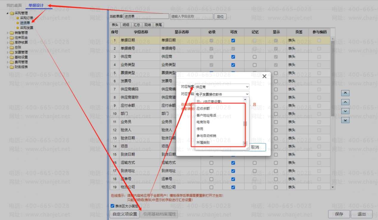 进货单单据设计里面的引用基础档案属性,供应商里面没有'应付余额'选项,只有'应收余额'选项。