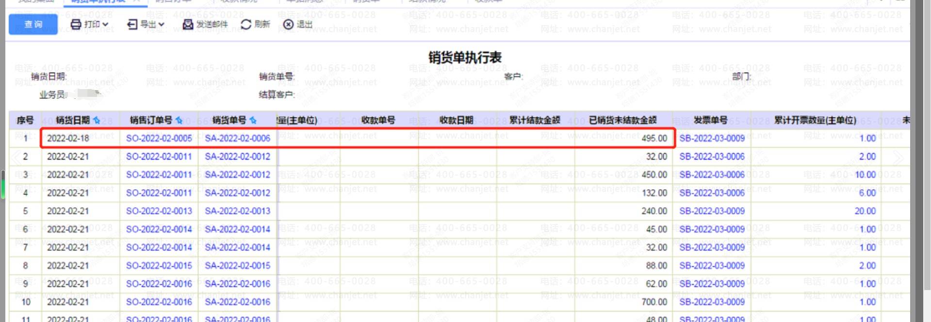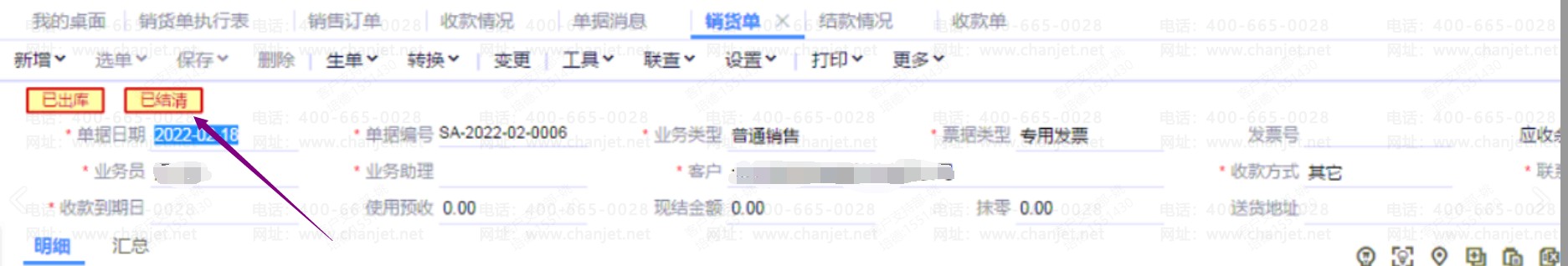 销货单执行表查询显示已销货未结清,联查销货单显示已结清 销货单号:SA-2022-02-0006