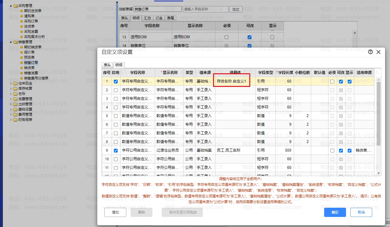 存货设置自定义项描述,协同分享需要查看自定义项信息。。