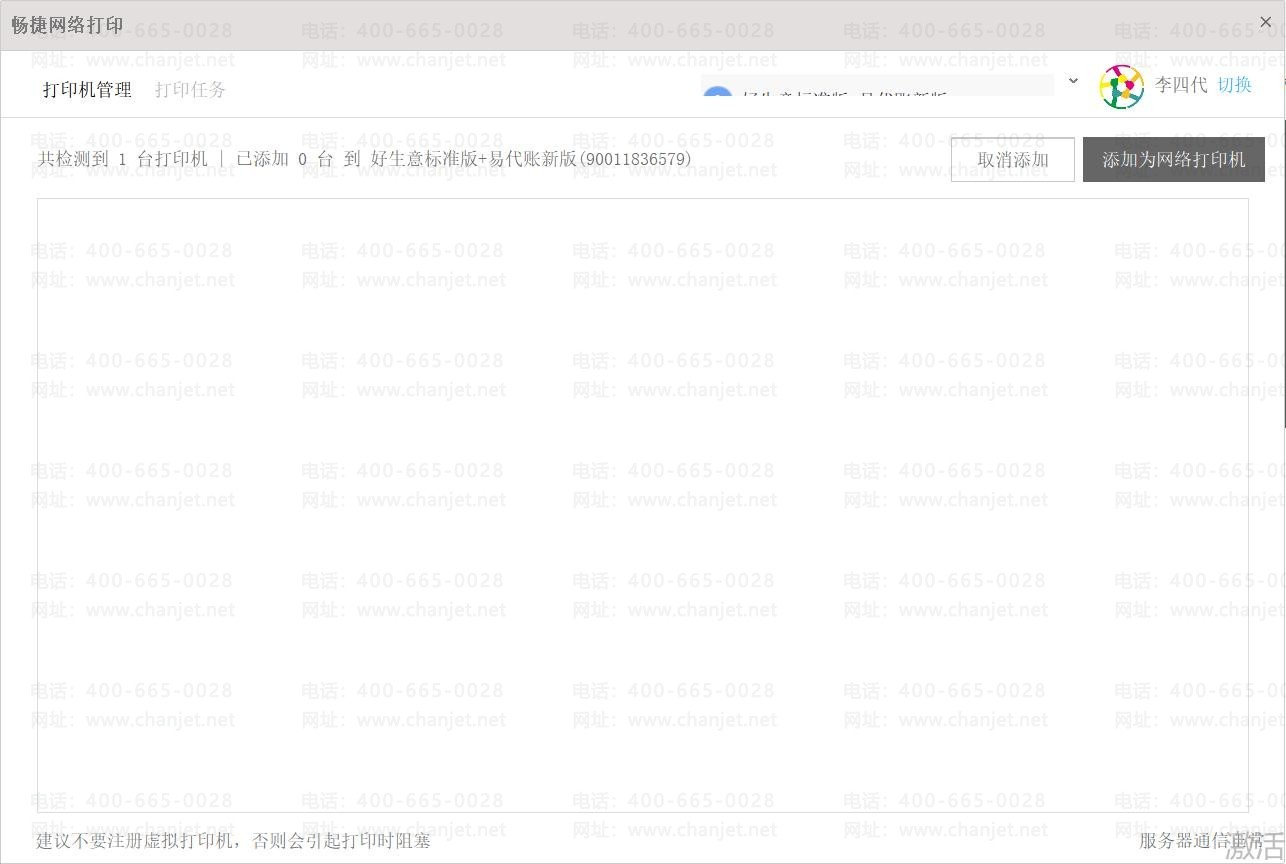 畅捷通好业财网络打印机界面选不到对应的打印机?