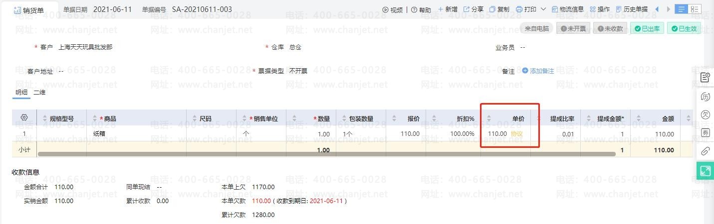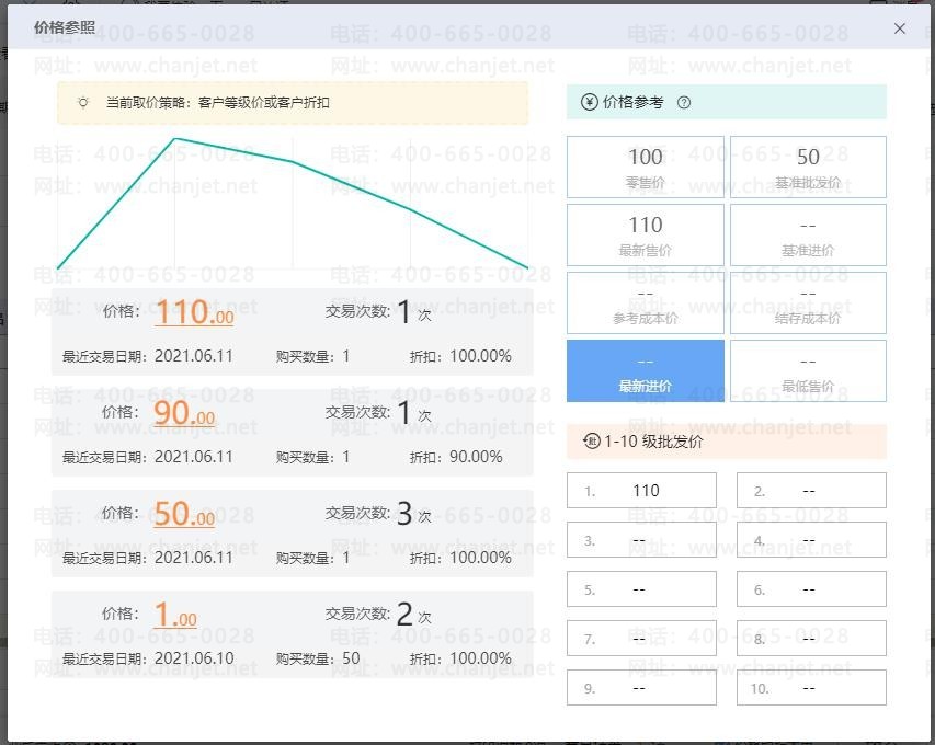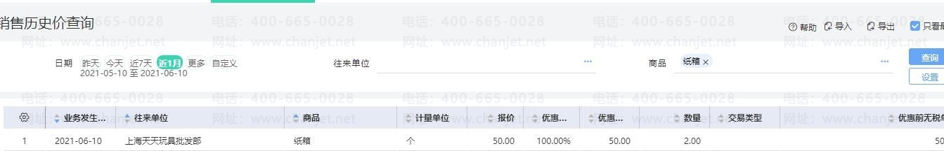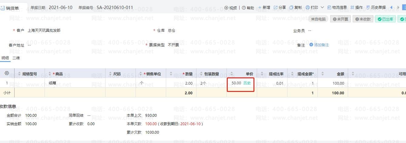 1. 当【售价提取设置】设置【客户最近交易价】为第一优先执行时,自动带到单据上的是客户对该存货的最近一次售价: