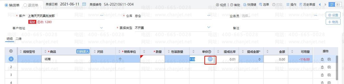 1. 如果自动带出的价格不是本次最终确定的售价,还可以点击【单价】旁的省略号: