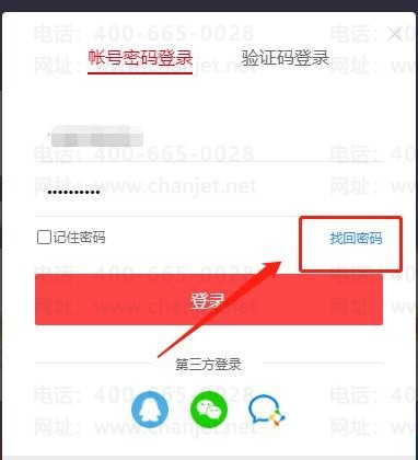 b、登录界面,输入手机号,之后点击【找回密码】输入验证码之后重新设置新密码即可。