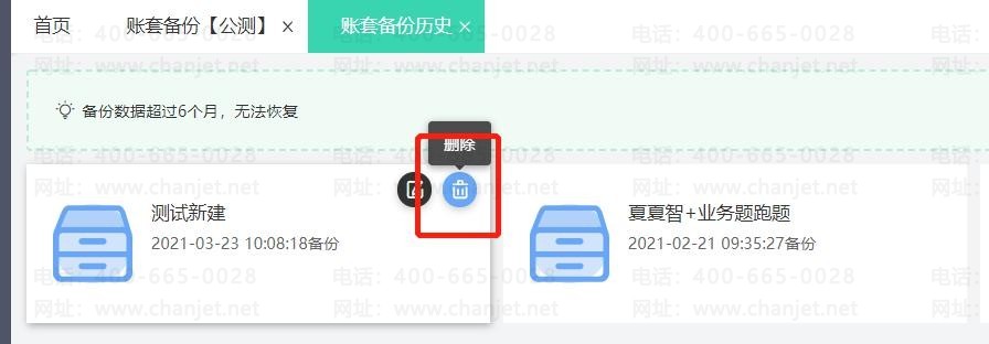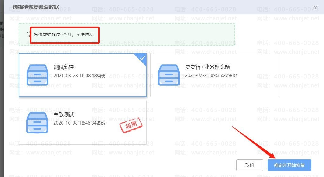 选择备份的账套去恢复(备份数据超过 6 个月,无法恢复)