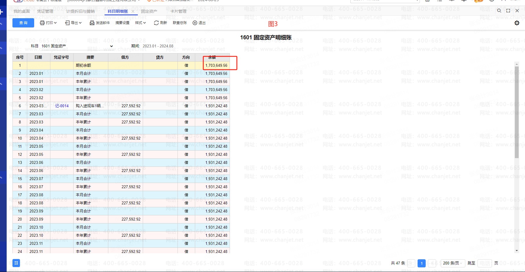 问题1:我们公司固定资产期初是1703649.56元(图3)这个数是得出来的?