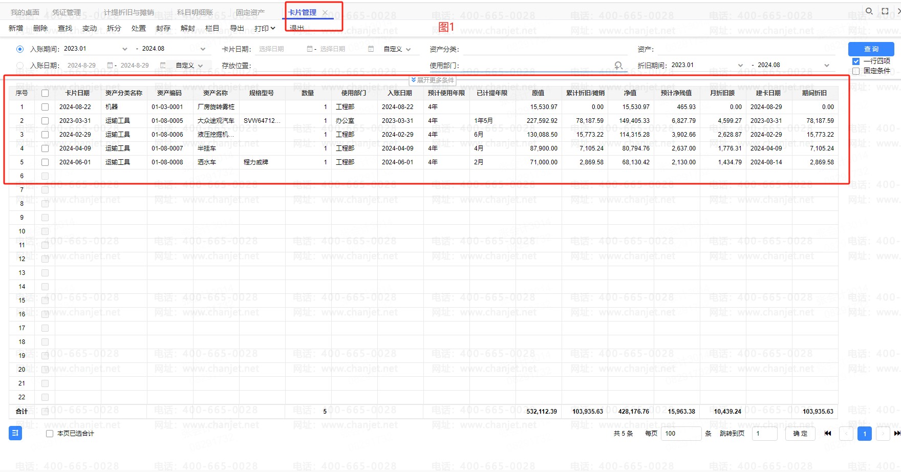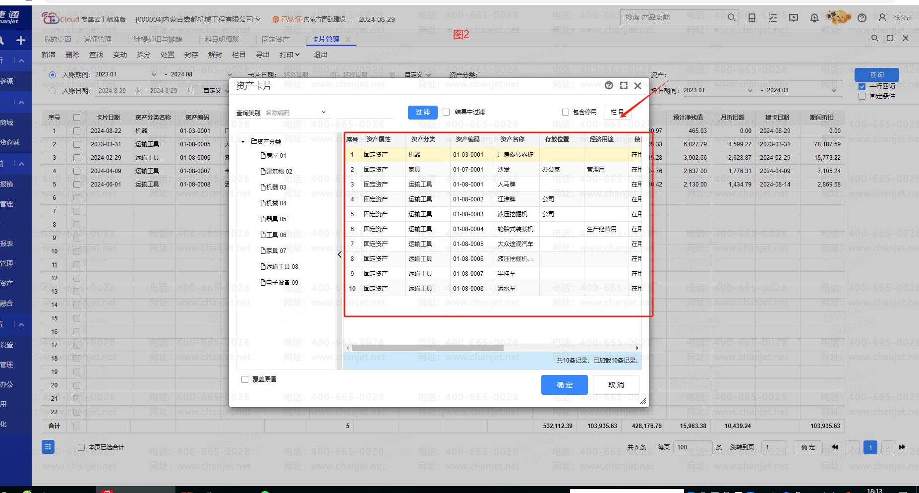 问题 2: 为啥图1中只显示部分固定资产?图2中的固定资产更多一些,怎么能查看到全部的?