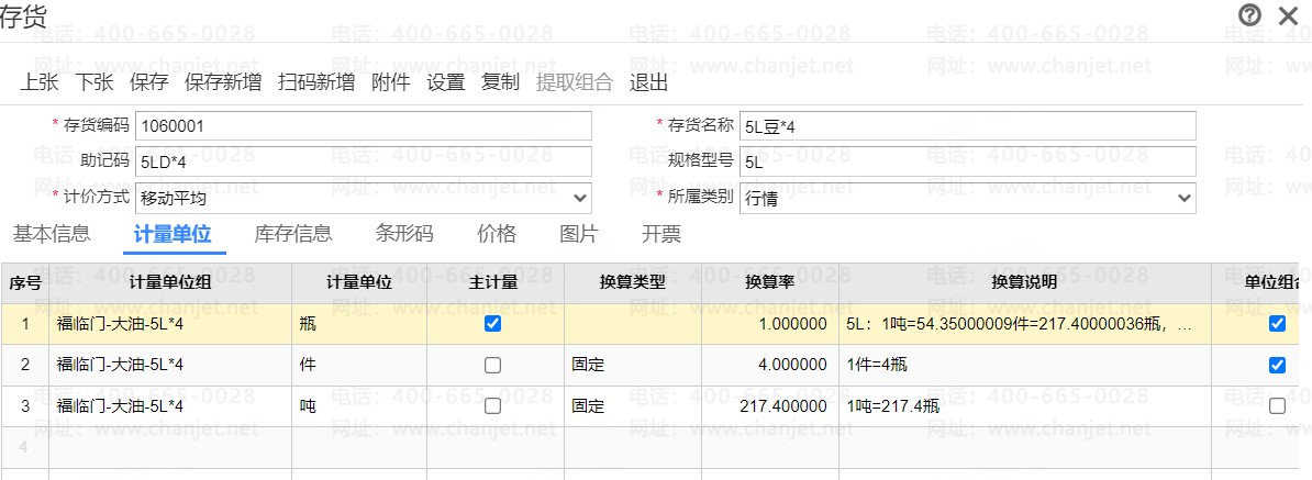【问题详情】:计量单位组合。例如;5L豆油/件/4桶,如果单据是2桶,在组合单位中如何显示出:0件2桶。