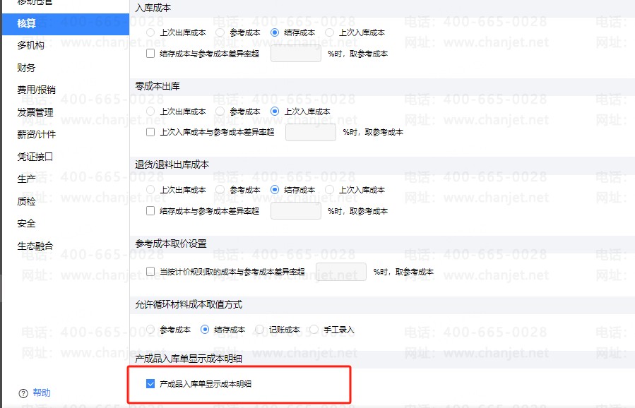 【问题答复】:可以先去T+选项设置启用产成品入库单显示成本明细,再去科目设置里设置。