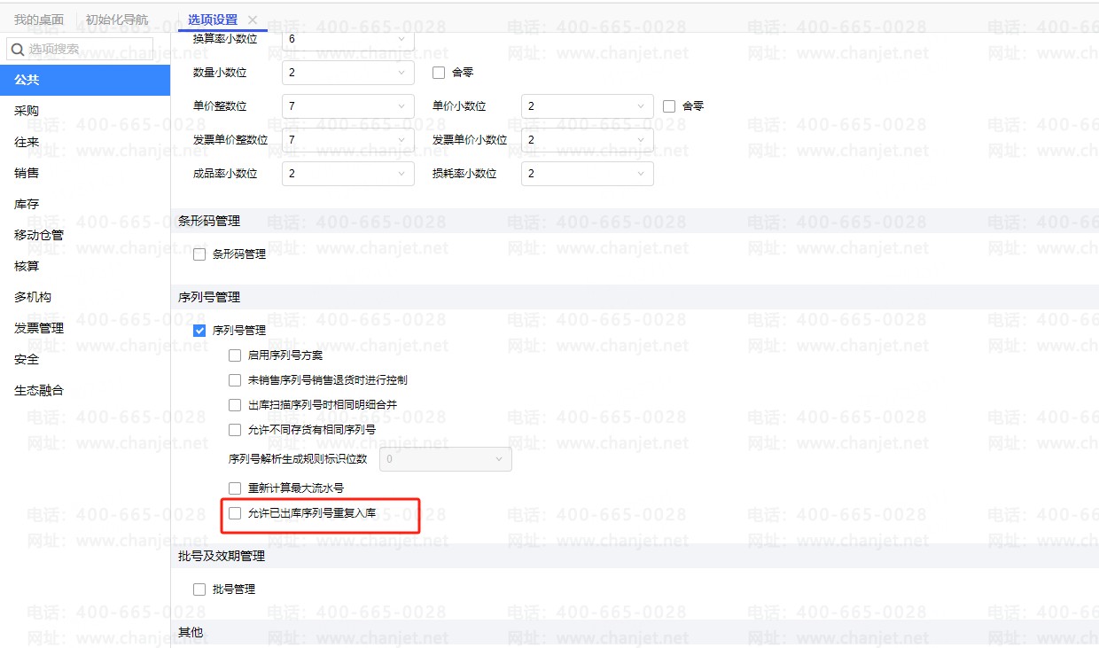 没有勾选允许已出库序列号重复入库选项,重复序列号入库是做不了的呢,如果您那依旧能做,尝试备份数据更新下对应版本最新的补丁再来查看。