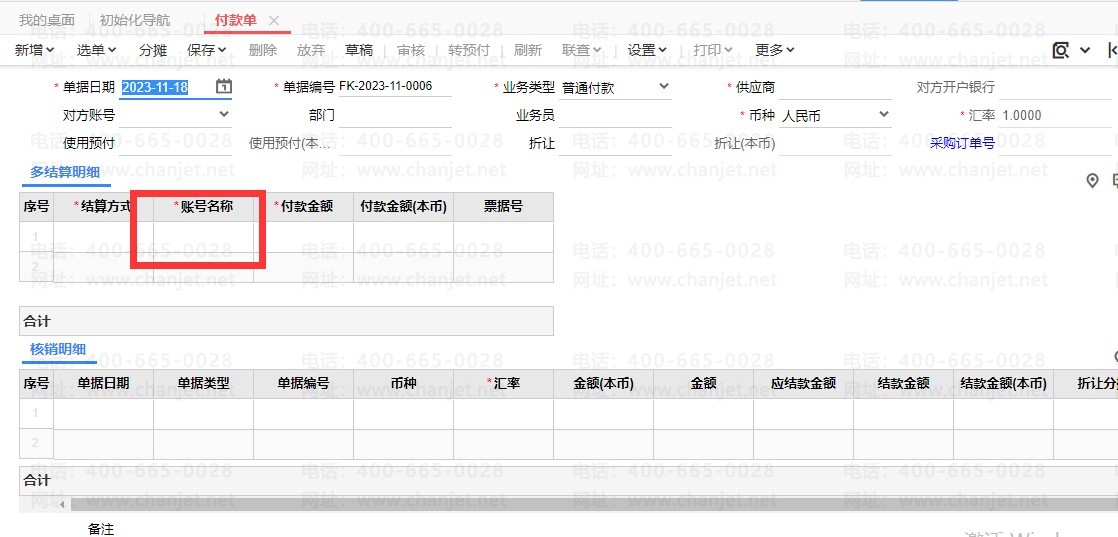 可以在做付款单的时候选择对应账户。
