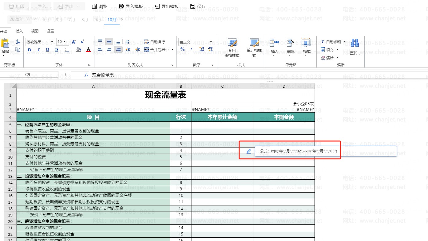 请问现金流量表里面的公式,怎么设置A流量项目减B流量项目,例如,“购买原材料、商品、接受劳务支付的现金”减“购买原材料、商品、接受劳务退回的现金”,公式我设置了LXJLL("年","月","","03")-LXJLL("年","月","","09"),但是执行报表后,这个是运算不了的,还是只取了03的流量总额。