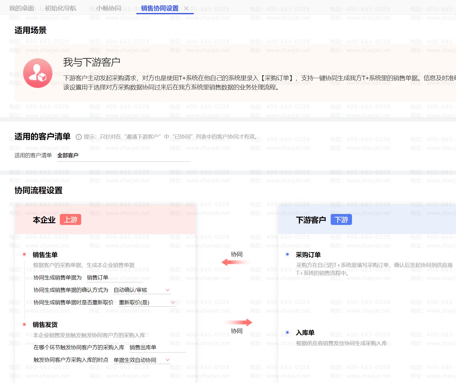 采购方录入采购订单审核(销售方采购员手机上同步收到小畅协同信息)-进入销售方T+C账套未发现同步的销售订单。小畅协同是否支持T+不同账套间单据同步?如果支持,请问我的设置是哪里错了?