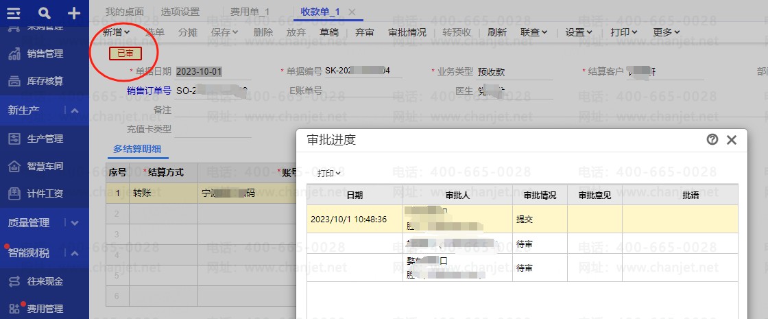 【问题详情】:为什么单据还没有在待审状态,单据右上角就会显示状态就是: "已审"