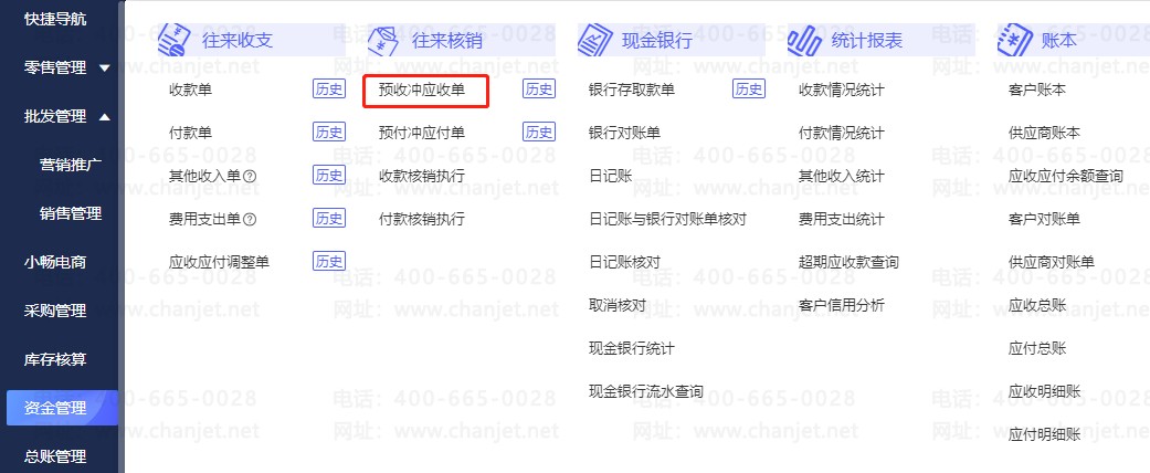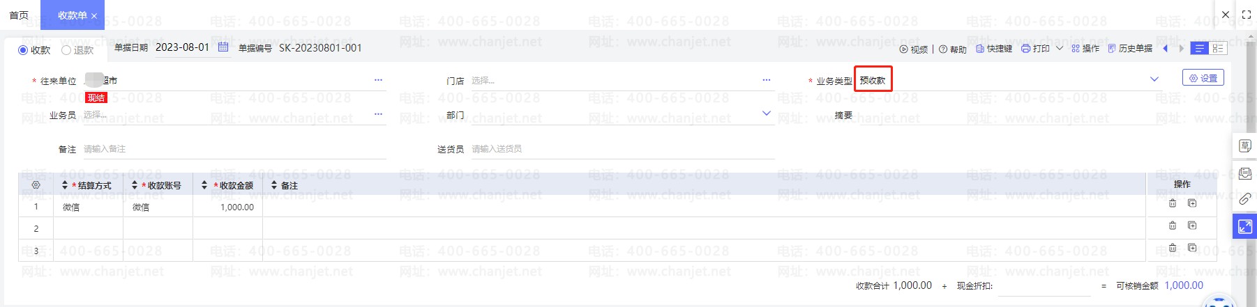 1、点击【资金管理】-【收款单】-业务类型选择【预收款】,选择该客户,做一张单据;