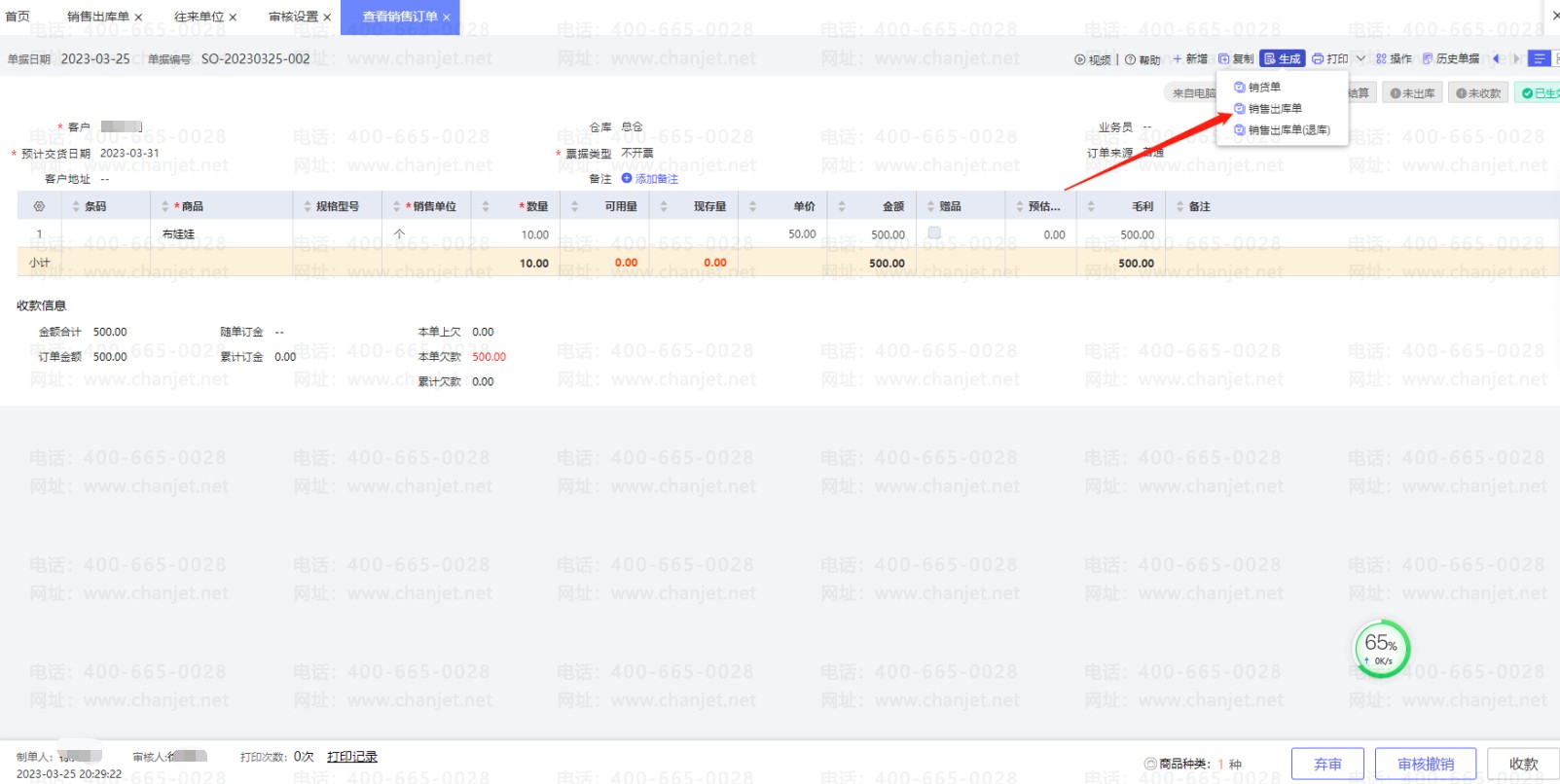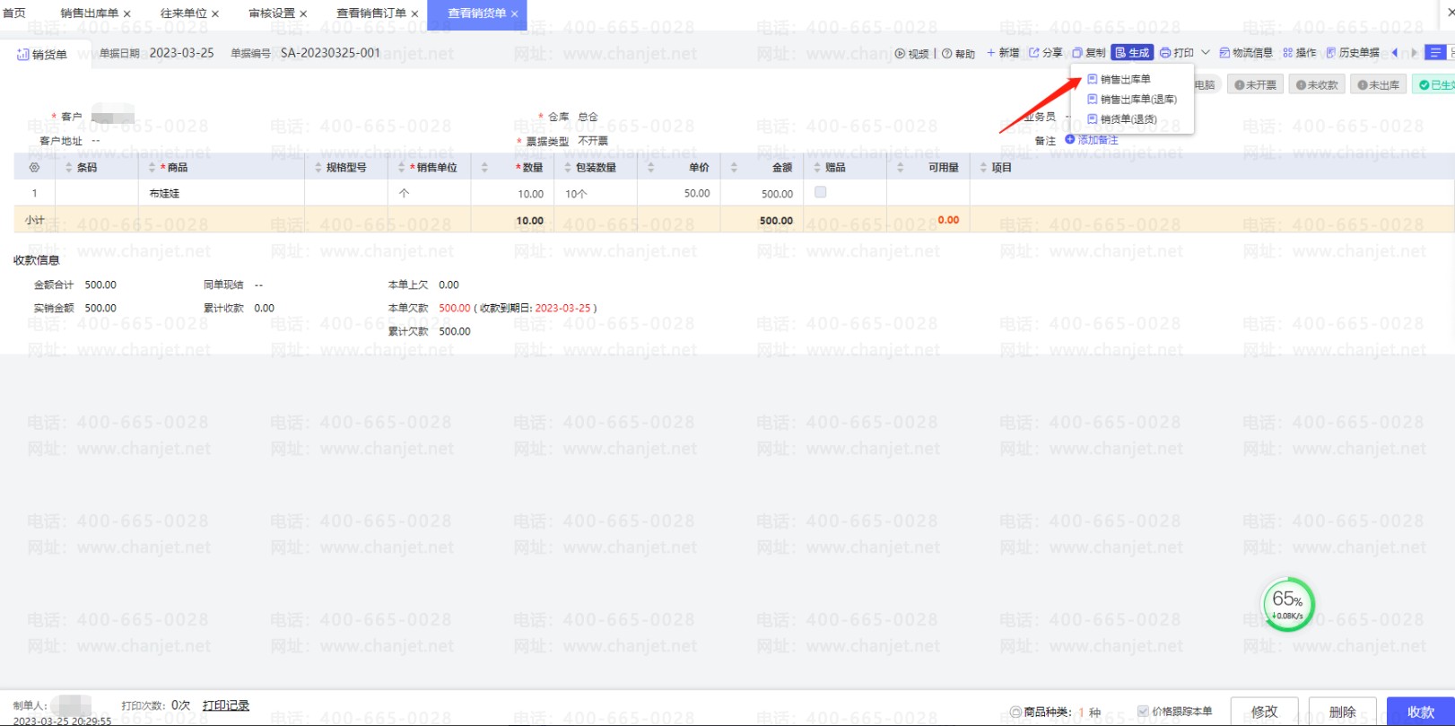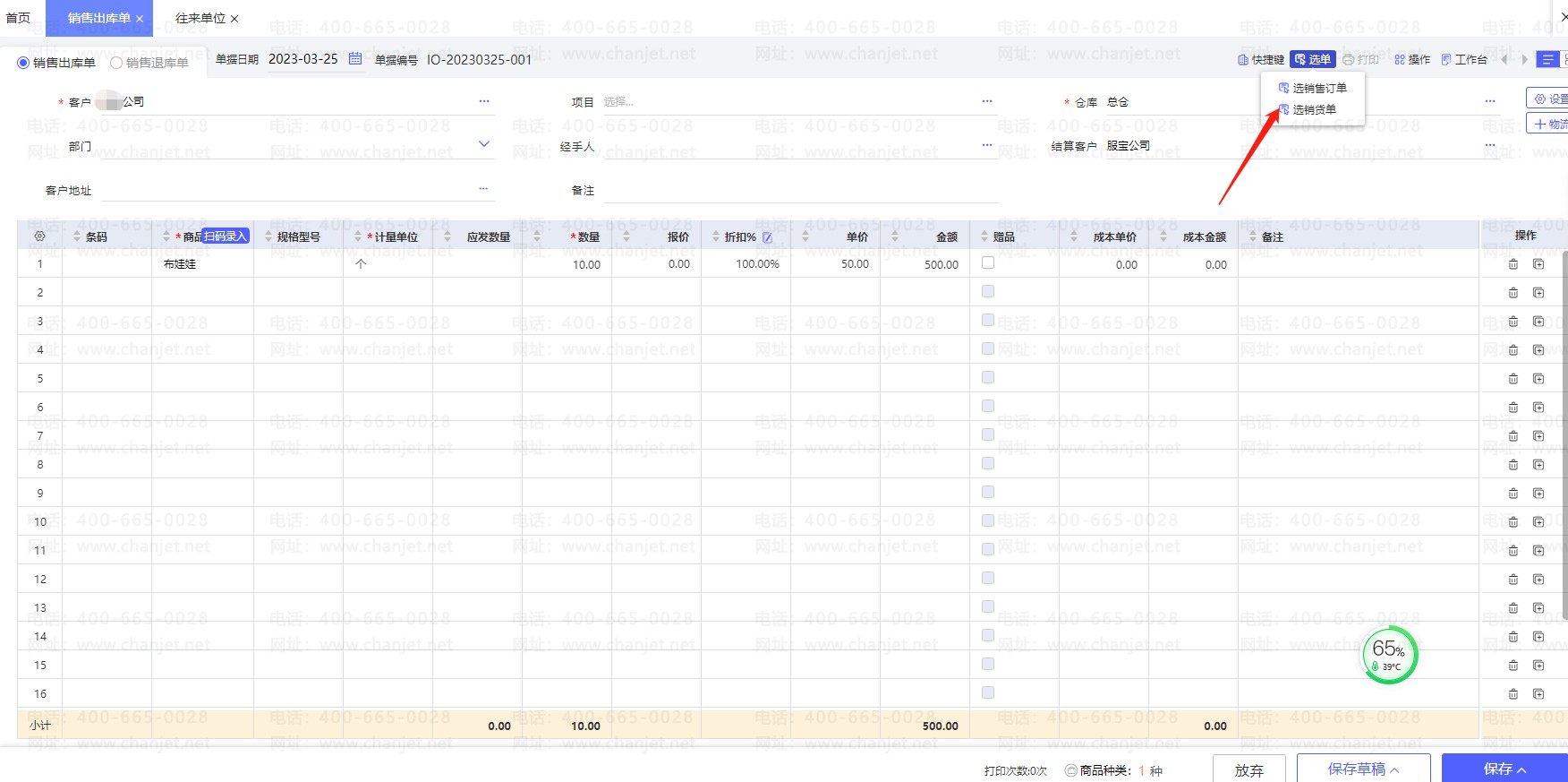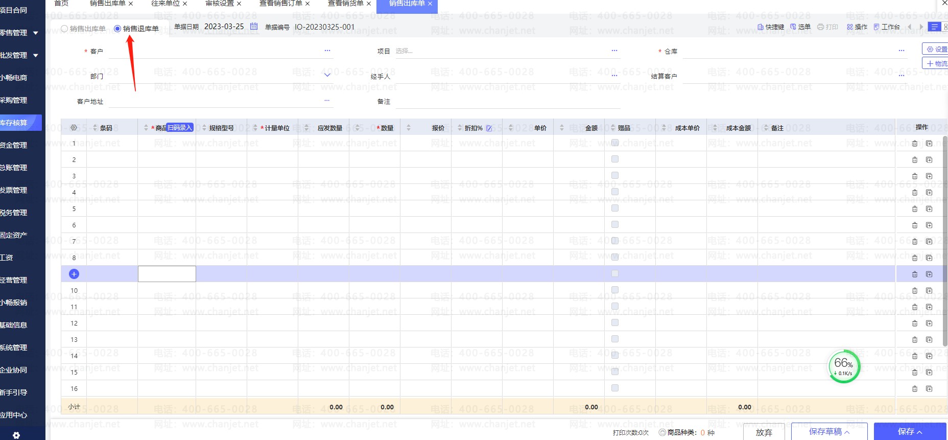【注意:】销售出库单新增界面左上角可以切换销售出库退库,销售订单和销货单都支持生成销售出库退库