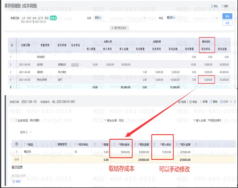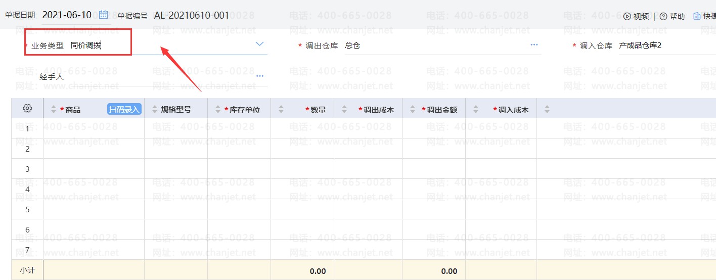 企业A仓库的商品需要调入B仓库的业务,调拨分为同价调拨(成本不变)和异价调拨(商品成本变动)两张,系统如何操作