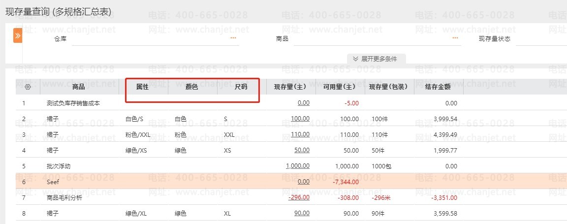 服装、珠宝首饰、化妆品等行业,服装颜色尺码众多,一个口红多种色号,一个珠宝首饰大小样式有几千种,如果每个商品都设置一个基础档案,那么几千个档案,造成极大的工作量,那么商品属性功能就能很好解决这个问题,同时可以根据属性来查询账表。