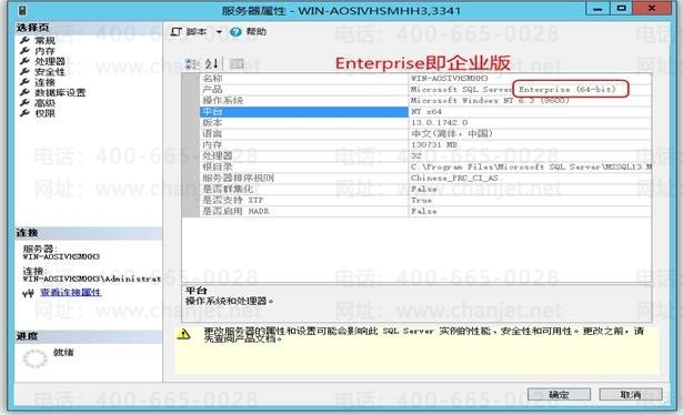 5、SQL SERVER要求64位,且是标准版及以上版本(通常就是标准版、企业版、数据中心版),不能是Express版本。首先数据库服务器上登录sql server management studio 。在对象资源管理器,第一行服务器名称上右键-选择属性,参考截图可确认版本,如图下操作: