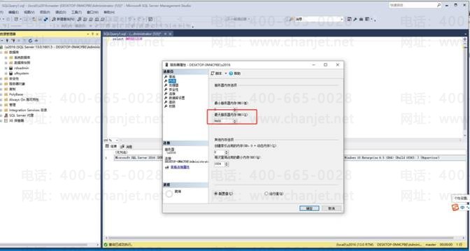 6、设置数据库最大内存,如果数据库单独服务器,则数据库最大内存为物理内存减去4G。如果数据库和专属云安装在一起,则物理内存设置为服务器内存的60%左右(例如:16G内存服务器则设置为9600M),如果剩余内存过小,则要增加物理内存。
