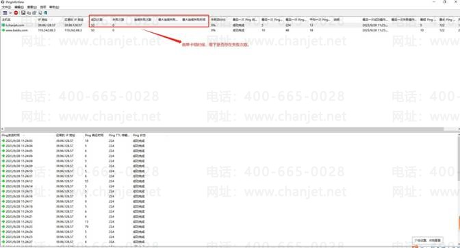 2、客户环境下运行工具:pinginfoview.zip,等做单卡顿的时候,查看下工具收集的网络情况,如果存在超时,说明网络不稳定,需要联系网络服务商进行处理、结果如图: