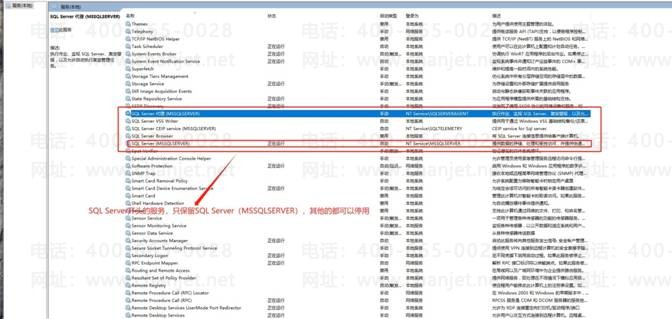 解决方案:停用一些非必要服务,减少内存消耗。打开开始-管理工具-服务,停用一些非必要服务(sqlserver相关服务,只保留主服务是运行的,其他的都可以停用)