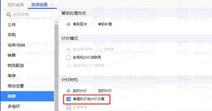 13、销货单审核慢,这种情况一般是因为实时计价,导致多用户一起审核时候造成了阻塞。可以在系统管理-选项设置-核算-计价时机里边勾选单据执行与计价分离,这样就可以提升审核速度。如图: