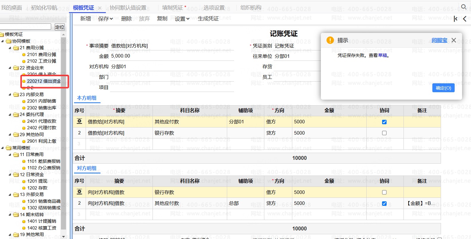 可以参照下图调整下协同凭证模板设置看下