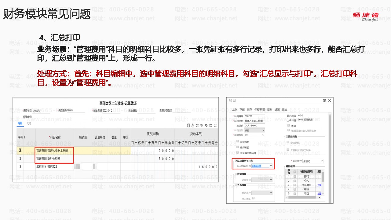 业务场景:“管理费用”科目的明细科目比较多,一张凭证张有多行记录,打印出来也多行,能否汇总打印,汇总到“管理费用”上,形成一行。