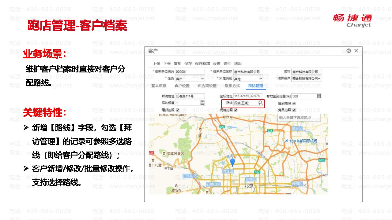 维护客户档案时直接对客户分配路线。