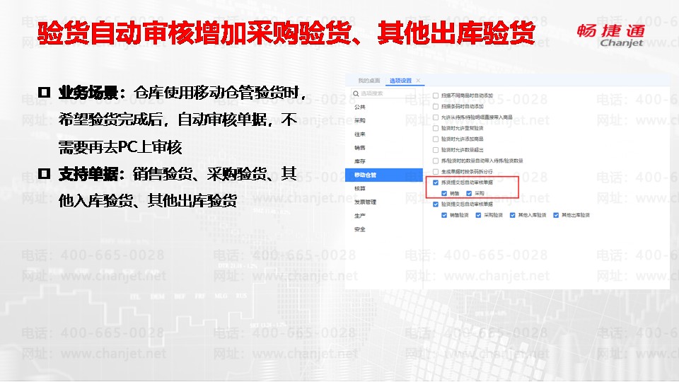 支持单据:销售验货、采购验货、其他入库验货、其他出库验货