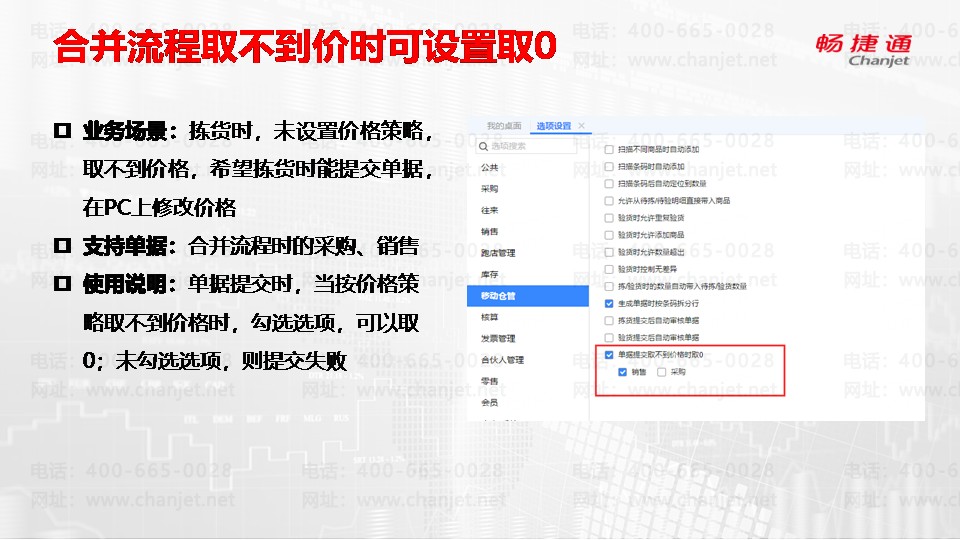 使用说明:单据提交时,当按价格策略取不到价格时,勾选选项,可以取0;未勾选选项,则提交失败