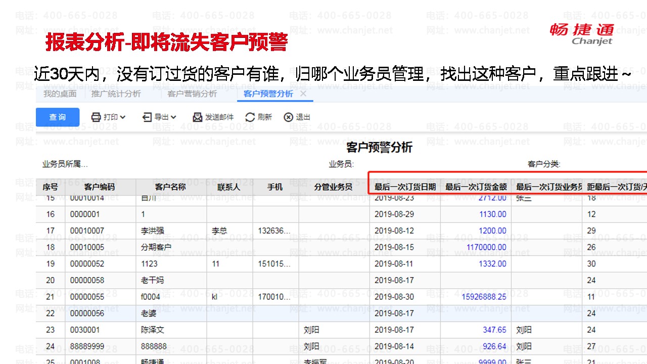 近30天内,没有订过货的客户有谁,归哪个业务员管理,找出这种客户,重点跟进~