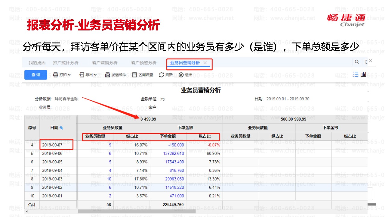 分析每天,拜访客单价在某个区间内的业务员有多少(是谁),下单总额是多少
