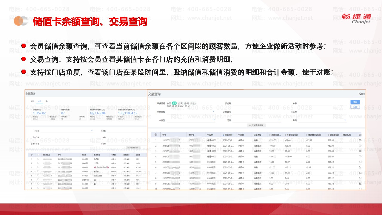 交易查询:支持按会员查看其储值卡在各门店的充值和消费明细;