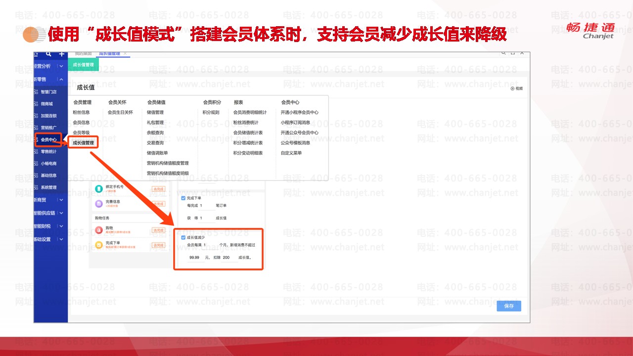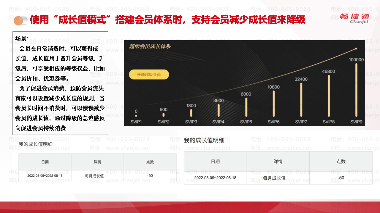 使用“成长值模式”搭建会员体系时,支持会员减少成长值来降级