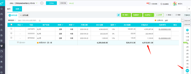 按照个计税基础“销项价税合计”得出:印花税申报表中“购销合同”的计税金额=发票管理中销项发票“价税合计”这列的合计数=4818861.38