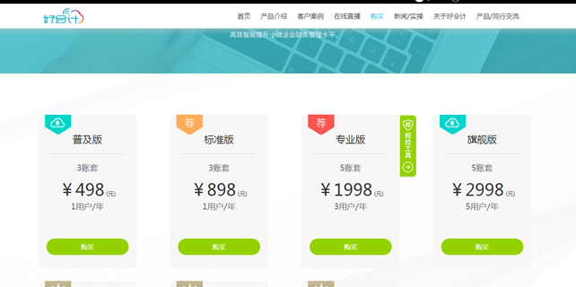 好会计共有5个版本:普及版、精易版、标准版、专业版、旗舰版。