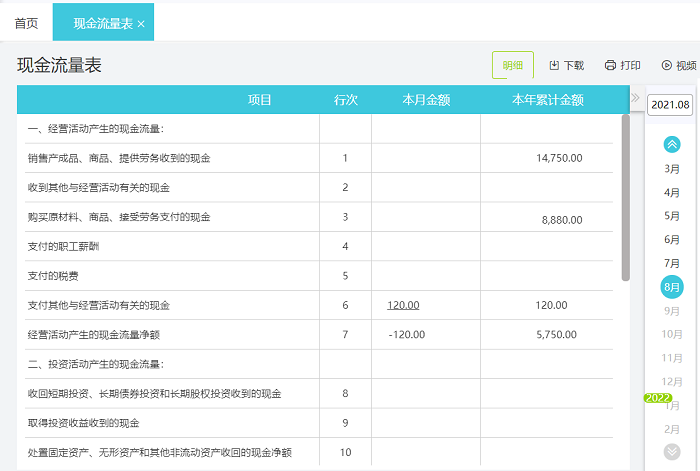 好会计软件中,内置了现金流量项目分配逻辑,每一张涉及现金银行的凭证自动分配项目,不需要手工逐项分配,做完凭证,只要点击现金流量表,整张报表可以自动生成并展示。