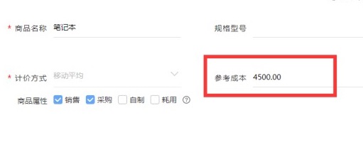 2.【基础信息】-【商品】中设置商品的【参考成本】为 4500: