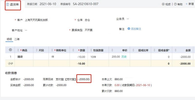 一、好生意销货退货未收款