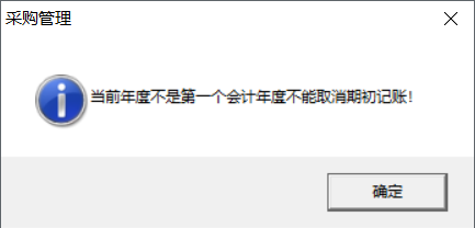 1、采购模块以新年度日期登陆,点击采购期初记账,提示如下图: