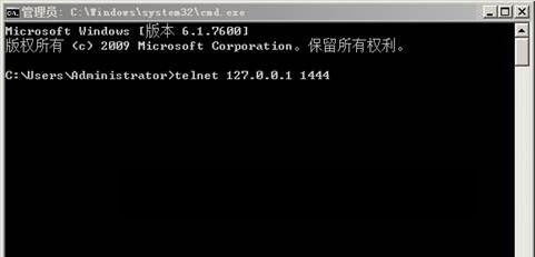 6、检测修改后的端口是否通:点击“开始”-“运行”中输入“CMD”进入DOS窗口,再输入 telnet 127.0.0.1 1444,如下图:
