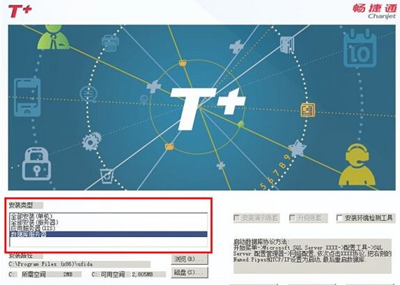 由于畅捷通T+软件支持分离部署,也就是说数据服务器和应用服务器不在同一台电脑上,在安装畅捷通T+软件时,可以选择安装类型,如果选择的是数据库服务器表示本台电脑用来存放畅捷通T+的账套数据,所以首先要安装好数据库,再在安装畅捷通T+软件时选择数据库服务器的安装类型补充安装畅捷通T+11.51相关文件。