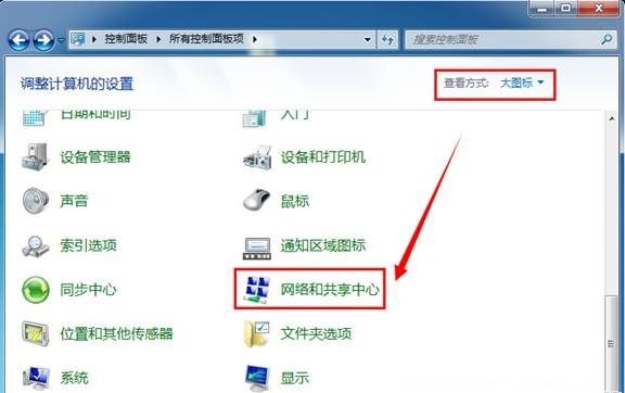 (1)依次点击“开始”—“控制面板”- 查看方式选择“大图标”— 单击“网络和共享中心”