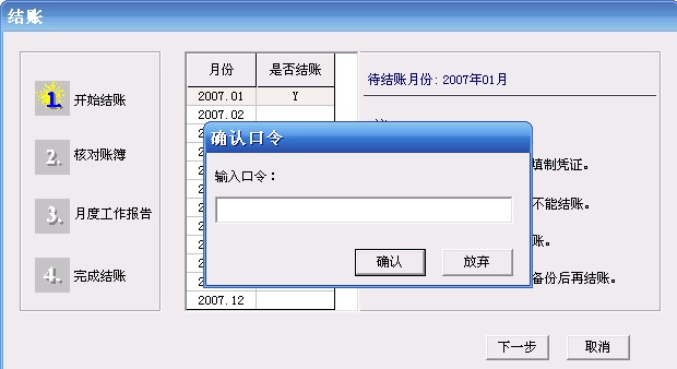 用鼠标单击要反结账的月份,然后按Ctrl+Shift+F6键,输入主管口令,单击确定即可。