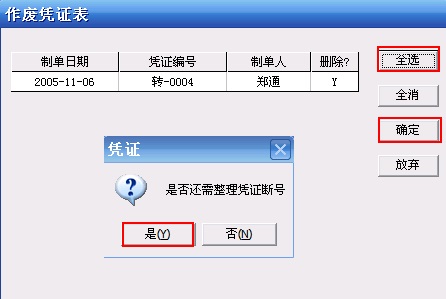 执行“制单”——“整理凭证”,选择要整理的月份,然后在弹出的作废凭证表里单击全选按钮,【确定】,提示是否整理凭证断号【不整理的话,被删除的凭证号会保留,整理的话,被删除的凭证号自动分配】。凭证就被删除了。