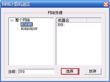 打开之后如下图,在当前后面输入用友服务器的计算机名称,点【选择】。
