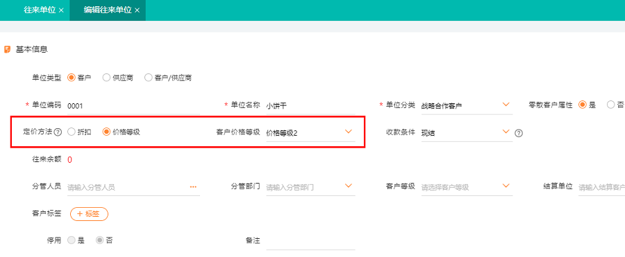 1. 给客户设置专属价格等级,业务开单根据客户价格等级自动带出专属价格或历史交易价格,快速响应客户,避免报错价格带来的客户流失,有效提升销货效率。
