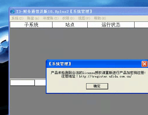 登陆t3财务通软件提示未检测到加密狗,打开系统管理也是同样的问题