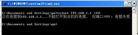 第二、同时用telnet命令测试1433,4630的端口是否通。出现如下界面表示不通: